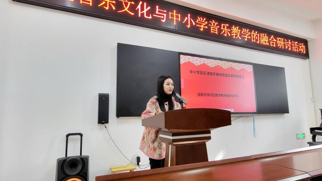 此次活动由浉河区教学教研信息化中心刘艳老师主持,在琵琶山学校举行。以两节展示课为主要内容。第一节是来自琵琶山学校初中音乐员工黄倩,授课内容是《多彩的中国民歌》,第二节是来自胜利路小学音乐员工高冉冉,授课内容是《走近京剧》。