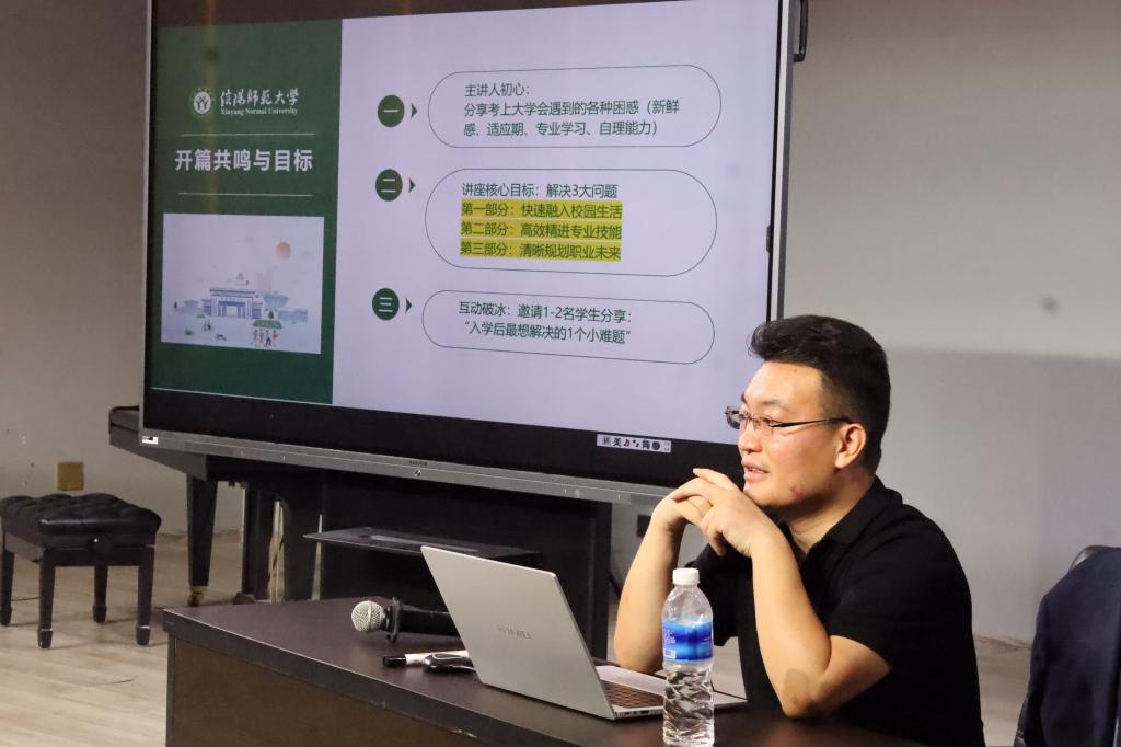 讲座伊始,肖宗恒博士指出,新生融入校园需从两方面入手:一方面,应将专业学习放在首位,合理安排时间,积极利用琴房、排练厅等专业资源,避免虚度宿舍时光,同时注重构建和谐的宿舍关系;另一方面,应客观看待专业基础上的差异,主动探索适合的学习方法,通过有效技巧缓解焦虑,并树立长远发展目标,避免短期行为。